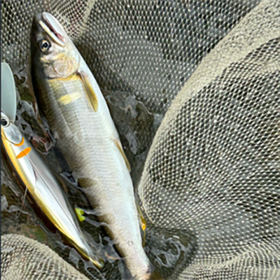 予想通り、気温が上がり、水況も落ち着いた頃、ミノー、バイブレーションなどの鮎ルアーに型のいい琵琶湖アユがかかり、川の流れに押されたつよう引きを味わったのでした。