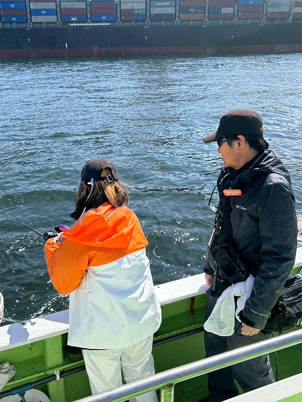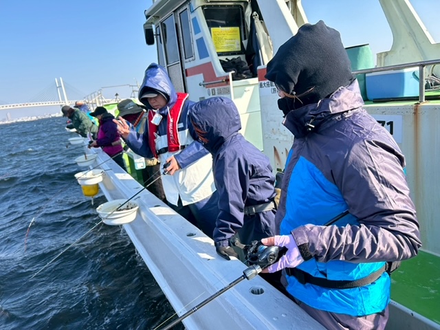 つりジェンヌオブザーバーは今回別のイベント出席のため不参加。乗船時には釣座の混乱が無いよう奥側みよし(右舷)からご案内をしていき、全員準備が整ったところで出船です